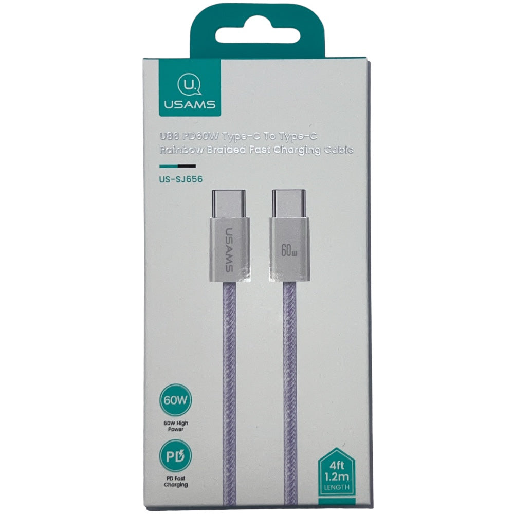 USAMS US-SJ656 U86 1.2 m PD 60W Cavo di Ricarica Rapida Tipo c su Cavo Intrecciato di Tipo c Rainbow - Purple