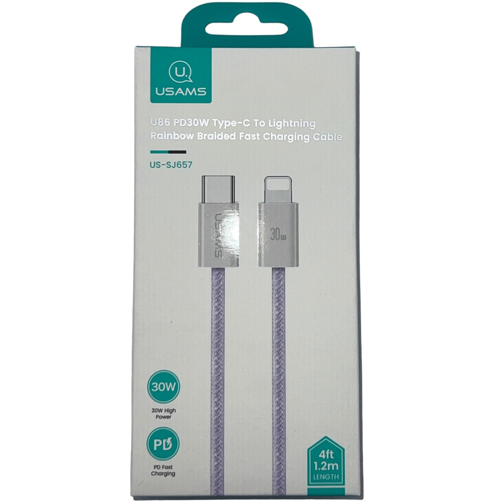 USAMS US-SJ657 U86 PD30W Cavo dati di ricarica rapida intrecciato da USB-C/Tipo-C a 8 pin . lunghezza: 1.2 m (viola)